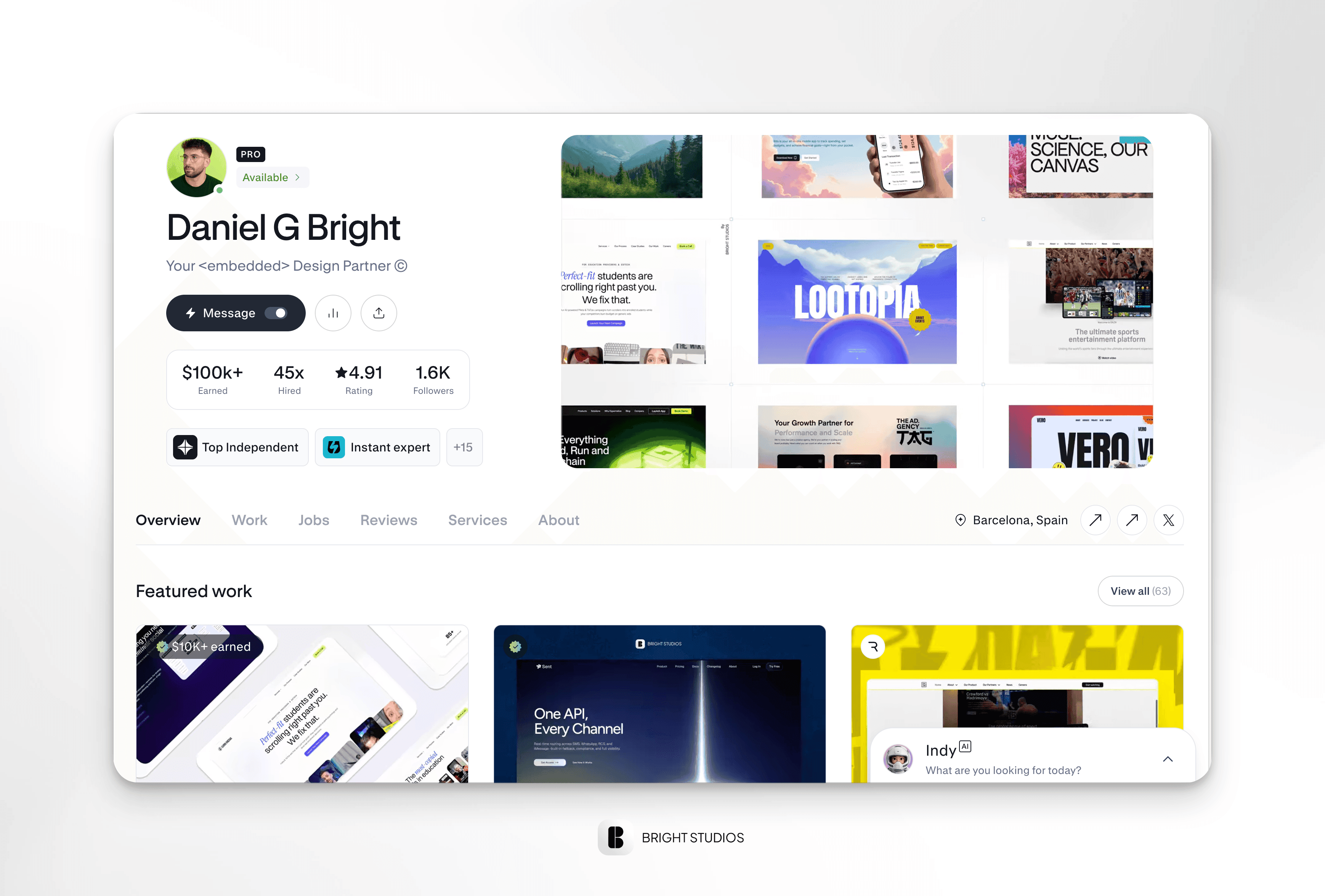 Daniel Bright started his career as a freelance designer, balancing academic work in communication and design with early client projects. His reputation grew quickly, particularly on platforms like Contra, where he became a Top 1% independent, earning consistent recognition for his ability to pair clean design with strategic thinking.