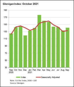- Activity uptick in September following slower summer suggests project start growth in Q.4 2021 and Q.1 2022