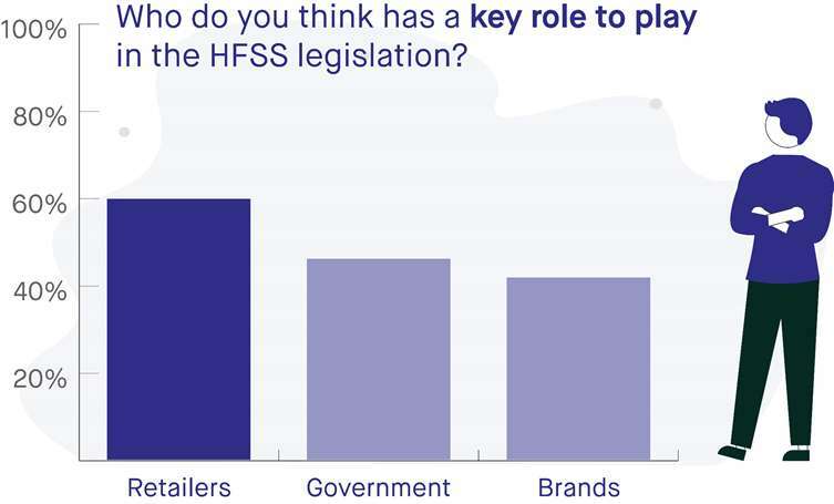 Over a third (35 per cent) are concerned that they will end up falling foul of the new rules and less than a fifth (18 per cent) admit that they don’t know where to begin with their preparations. In spite of this, 60% of the respondents acknowledged that they themselves have a key role to play in the HFSS legislation. This was followed by 46% believing that the Government needs to be involved and 42% stating that brands also have an integral role in the process.