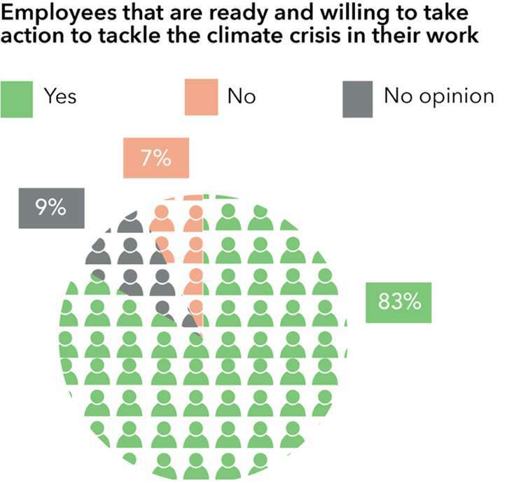 - In the UK, while 78% of staff say that they are ready and willing to tackle the climate crisis at work, 35%[1] of all employees think their companies aren’t taking enough climate action.