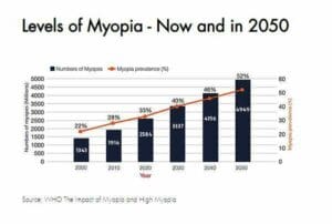 Myopia is now considered by the World Council of Optometry (WCO) as a ‘serious eye condition that all children should be screened for’. The World Health Organization (WHO) predicts that up to half of all people will have myopia by 2050. In 2015, the WCO declared that the ‘standard of care for myopia must include early detection in children, allowing myopia management with evidence-based treatments to prevent catastrophic healthcare effect.’ Progress in delivering these objectives has not been rapid enough.