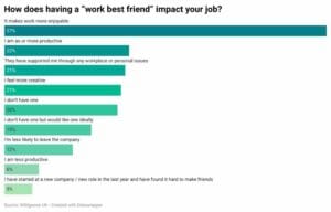 For those who have a ‘best friend’ at work, the research highlights clear benefits. Unsurprisingly, almost two-thirds (57%) of respondents say it makes work more enjoyable. Interestingly for companies, 22% believe it means they are equally or more productive, and 21% say having a best friend at work makes them more creative. 12% of people are less likely to leave a company where they have friends.